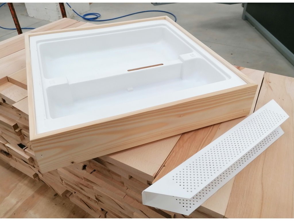 Stropné krmítko je určené na úle rozmeru 42 cm. Pasuje na nástavky B10 a E10.