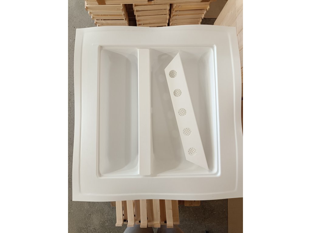 Hrúbka materiálu 1,5 mm, hĺbka vaničky 5 cm.