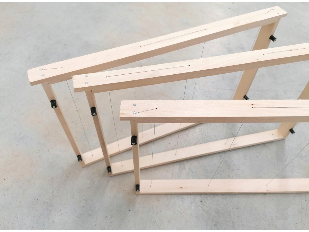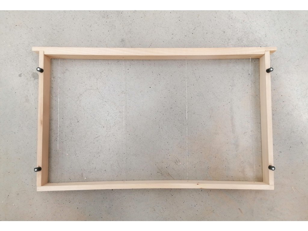 Ručne vyrábaná stlačená alebo sponkovaná konštrukcia včelích rámov o rozmeroch 39 x 15 cm s nerezovým výpletom a medzerníky na boku.