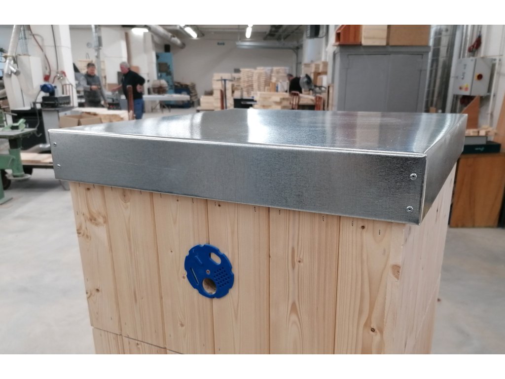 Plechové veko z pozinkovaného plechu chráni úľ pred nepriazňou počasia.